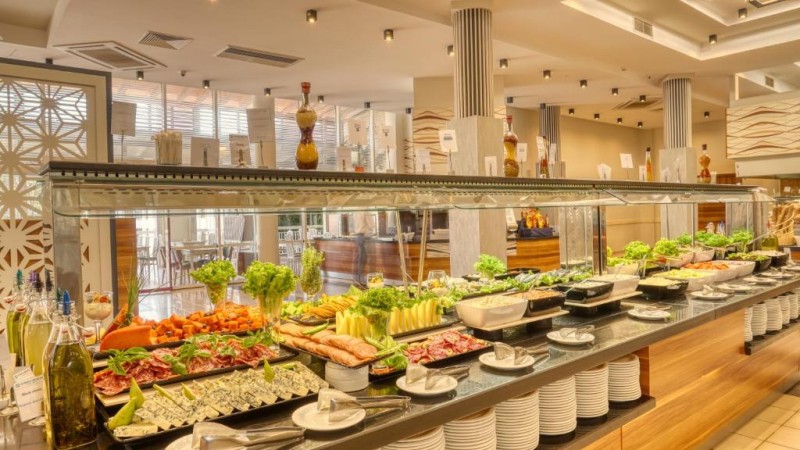 Oaspeții se pot relaxa pe terasa din grădină sau la unul dintre cele 4 baruri, dintre care unul pe plajă. Restaurantele servesc mese tip bufet sau à la carte și mâncăruri asiatice, italiene, mexicane sau bulgărești. Proprietatea are snack bar.