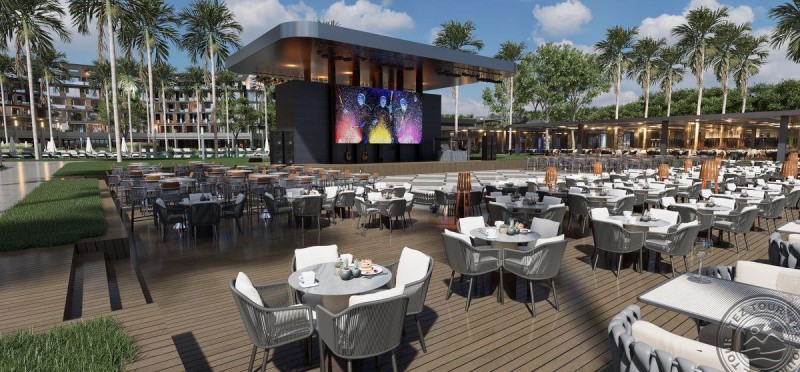 9 piscine în aer liber, cu parc acvatic cu 9 tobogane, pentru copiii - 5 . Are discotecă gratuita (în interior)