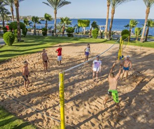 Hotelul este la 5 minute pe jos față de plajă. Acest complex de 5 stele oferă plajă privată cu nisip și pontoane deasupra apei din Golful Rechinilor. Are 5 piscine cu apă dulce, încadrate de palmieri, cu vedere directă la insula Tiran. Una dintre piscine este doar pentru adulți și oferă cadă cu hidromasaj în aer liber și bar în piscină.